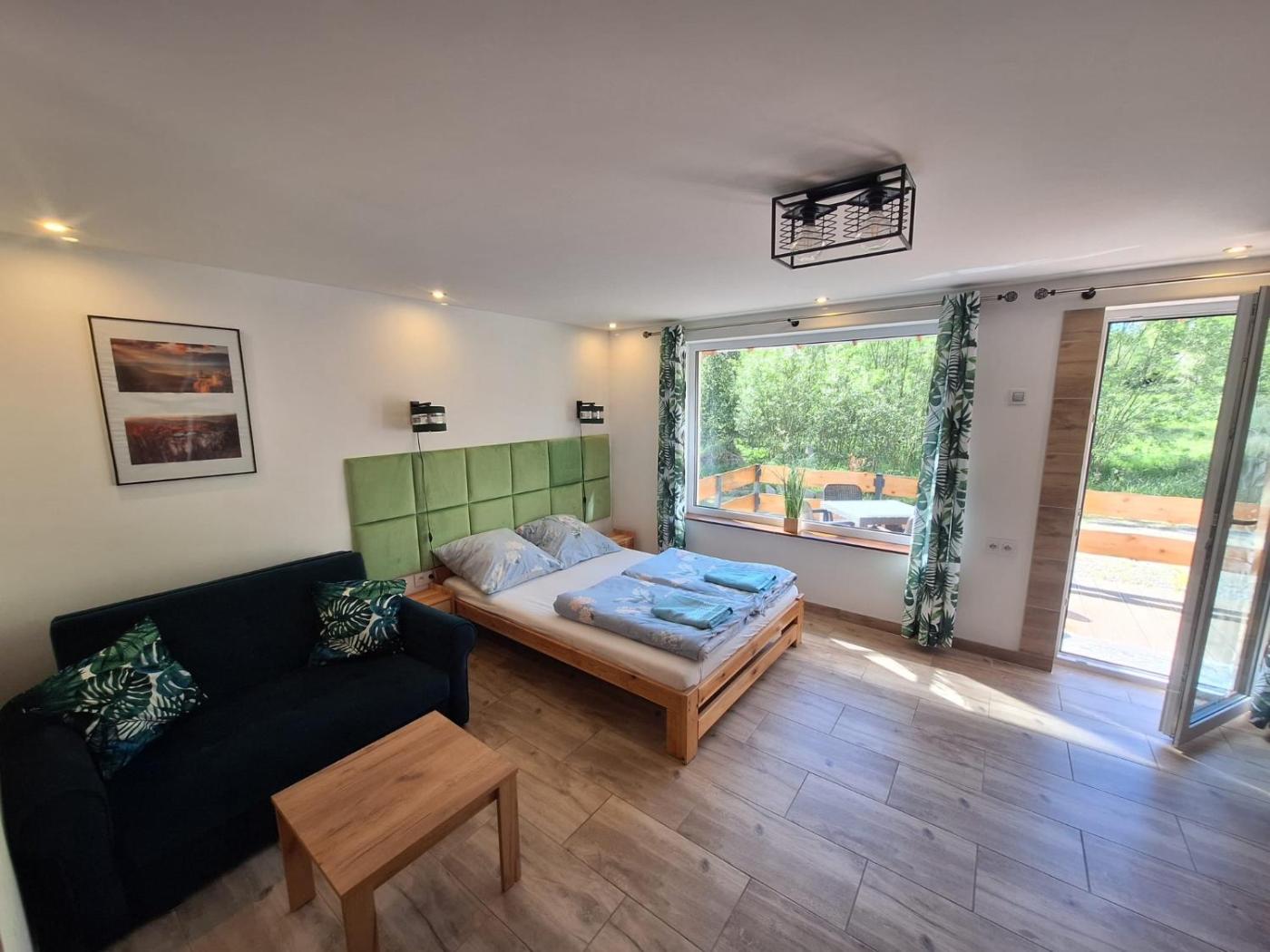 Apartament typu studio z balkonem. This apartment comprises 1 living room, 1 separate bedroom and 1 bathroom with a shower and a hairdryer. Guests will find a stovetop, a refrigerator, kitchenware and an electric kettle in the fully equipped kitchen. The apartment also provides guests with a barbecue. A seating area with a flat-screen TV, a dining area and a terrace are provided in this apartment. The unit offers 3 beds. Apartament - 4 osobowy. Powierzchnia pokoju ok.: 30 mkw.