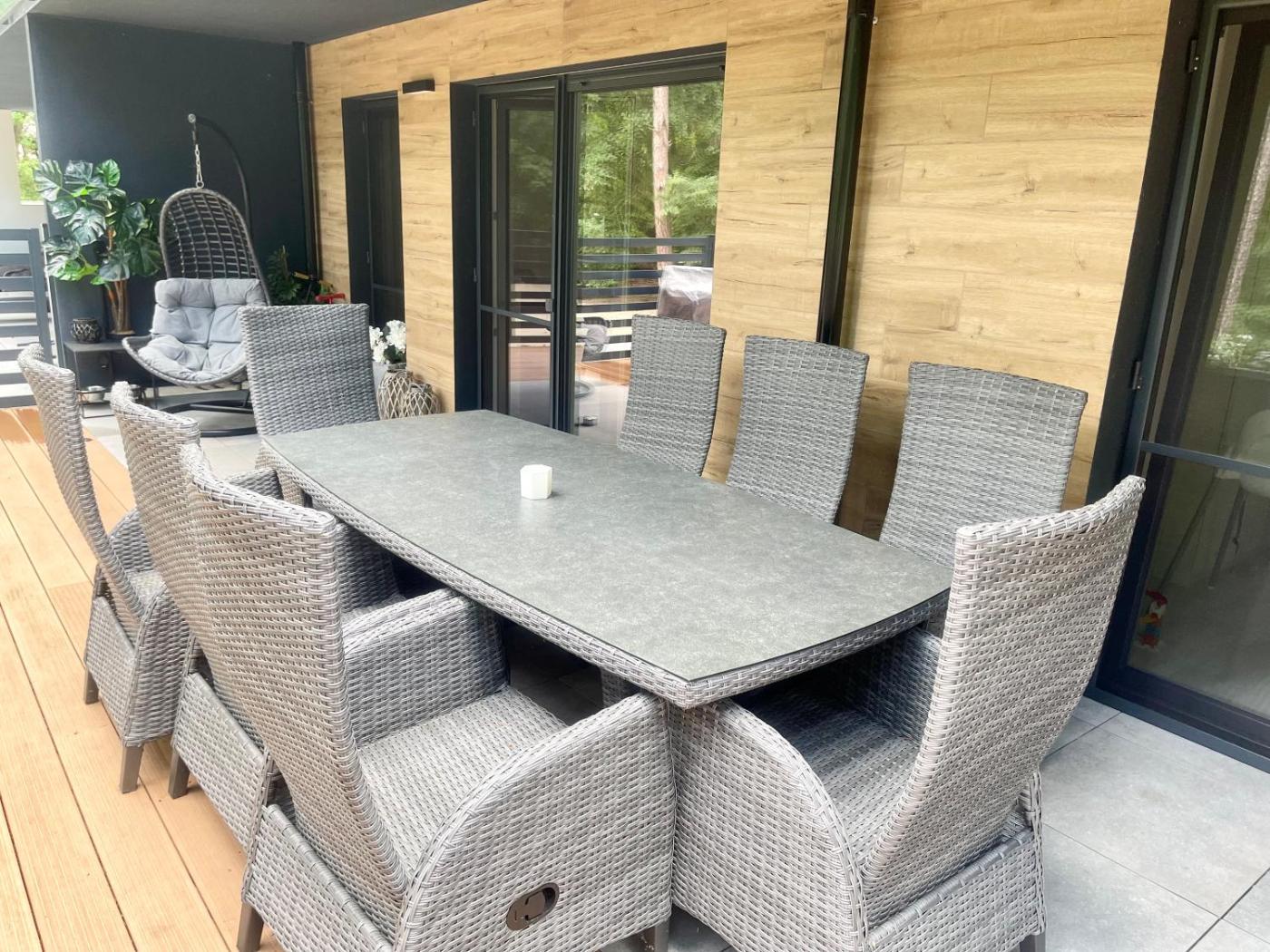 Zaplecze odnowy biologicznej obiektu MAJKA Apartamenty na Wydmach obejmuje saunę i wannę z hydromasażem.